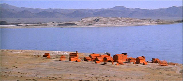 Like the other commenters, I cannot hold with Jeff’s peremptory dismissal of HPD. I supposed it’s the great Pasta Divide that separates us. His contempt for spaghettis and anything associated with them is total. If it smacks of De Cecco, Jeff abominates it. He has his reasons, but what he loathes, I love. I cotton to the bizarre in Westerns just so long as it’s not grotesque or overly disturbing. This is a hallmark of the spaghettis, and it’s there in HPD, too. Clint riding out of the heat shimmer to the odd sound of that synthesizer is a great and strange way to start the film, and is a great way to end it, too. There is the social inversion of Clint annointing the lowly midget as the sheriff and the mayor. There is, of course, the red-painted town, which is surely one of the most striking visuals in all of the Western genre. And finally we have an avenging ghost of sorts, albeit one of surpassingly corporeal characteristics. No diaphonous specter is Clint, as the good folk of Lago will soon find out.