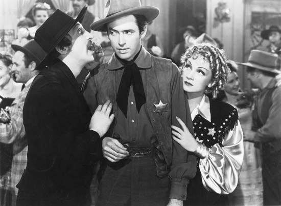 First, in the pre-War period 1936 – 39, came Rose-Marie (1936) and Of Human Hearts (1938) and his first real Western, the highly enjoyable 1939 Destry Rides Again. We can actually discount the first two. Rose-Marie was a Jeanette MacDonald/Nelson Eddy operetta set in Montreal about a Mountie getting his woman, so hardly a Western, and Of Human Hearts was a slushy family drama in which Stewart is a doctor in the Civil War who meets Abraham Lincoln. That wasn’t a Western either. So before the 50s it really comes down to Destry.