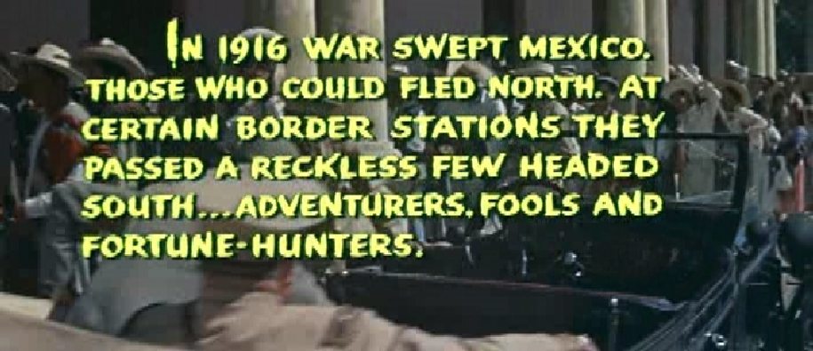 We learn that in 1956, scriptwriter Earl Felton, a drinking buddy of Robert Mitchum’s, said that he wanted to write a picture for Mitch about a soldier of fortune. Mitchum always saw himself as some kind of adventurer. Felton came up with a project about an American movie company in Mexico in 1916 and a gringo who was Pancho Villa’s right hand man. Mitchum loved it and they got United Artists interested. Felton’s friend Richard Fleischer agreed to direct. Fleischer had done no Westerns, but he was good at action films and had also worked on another Mitchum movie, His Kind of Woman, in 1951.