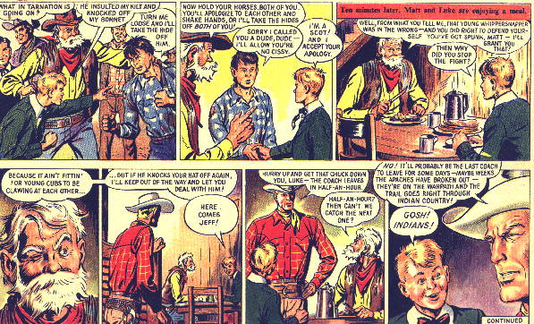 The serial was both written and produced by Charles Chilton (1917 – 2013) and in 1950 Chilton was approached by Marcus Morris, owner of Eagle, to make Riders of the Range a weekly feature of the comic. Morris even paid for Chilton to make his first visit to the American West. The strip was beautifully drawn by Frank Humphris (1911 – 1993) and became very popular. It lasted till 1962.