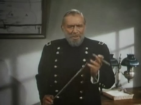 There’s an evil traitor general in charge of the territory, a Brigadier-General Stone (Ray Collins) who is big, bearded and bent on joining the South, not for sentimental reasons but for personal gain, the skunk. He deliberately foments war with the Indians in order to keep the Army engaged while he masterminds a plan for the Confederacy to invade the West. Hokum.