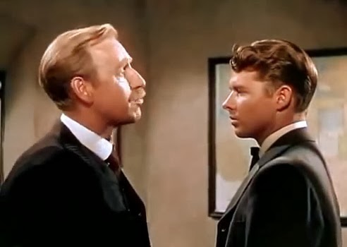 Anyway, Bill Doolin (for the Cimarron Kid is Bill Doolin, you see) reluctantly pillages express offices, trains and banks all over Oklahoma, and falls for a girl (Beverly Tyler). Really he wants out and to go to Argentina and start a ranch with Beverly and live HEA. But he needs that stake to do it, so continues robbin’.