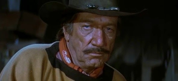 The inclusion of the technology angle went on too long serving little purpose and Mitchum’s comic bit with his gun was cringe worthy as was the barroom “brawl” But it was the casting killed Big Jake. Duke & Boone are the only two worth watching. John Doucette should never be cast in non-villainous roles. His role here is a dud and he should have been one of the 9. Cabot’s Indian accent seemed to come and go and looked like he left a tanning bed to hop on his horse. At least Neville Brand’s Indian in CAHILL was fun to watch. Villains make the westerns for me so this was a major disappointment.