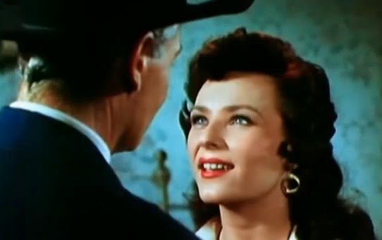 Tourneur used Ray Rennahan, one of the very best Western cinematographers, and visually this film is very good, especially once the characters get out of town and ride through that Sedona, AZ landscape (there was some Mexican shooting too). In the last part of the movie the hero takes off in a small party to take the accused for trial in another town, like Kirk Douglas in Along the Great Divide, and they have to face Garden of Evil-style dangers on a mountainous trail.