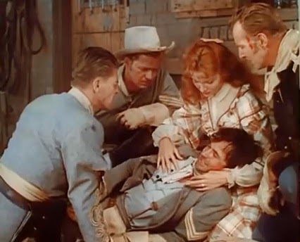 The Last Outpost, also known as The Apache Outpost, re-released later as Cavalry Charge, is an implausible Civil War story starring Ronald Reagan and Rhonda Fleming. It has its saving graces, such as Rhonda Fleming. The Loyal Griggs photography in Technicolor of Arizona locations around Old Tucson (dust and saguaros) is also attractive. Griggs of course won an Oscar for the cinematography in Shane in ’53 and he was a real artist.