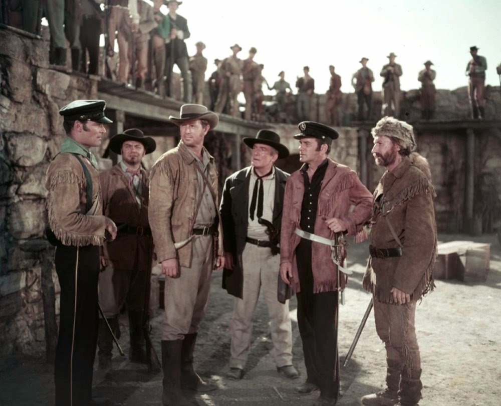 And as soon as we see the titles we guess that we might be in for something better than a run-of-the-mill B-movie. The cast for one thing: Arthur Hunnicutt as Davy Crockett, J Carrol Naish as Santa Ana, Ernest Borgnine, John Russell, Slim Pickens and Jim Davis among the defenders, and Russell Simpson as a parson (obviously).