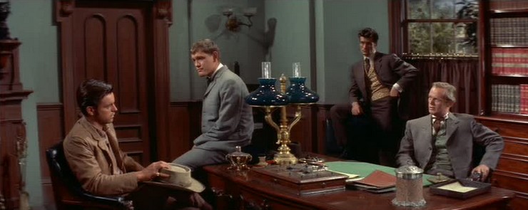 Hot-tempered self-made cattle baron Matt Devereaux (Tracy) feuds with his sons (Richard Widmark, Earl Holliman, Hugh O’Brian, Robert Wagner) over direction of the ranch, over whether to act within or outside the law, over money, power, love; over pretty much everything really. There’s action a-plenty as Matt decides to take the law into his own hands by attacking a powerful copper mining company that is polluting the water and killing his cattle. He is arraigned and faces trial. The excellent Russell Simpson is the judge, so he should be alright.