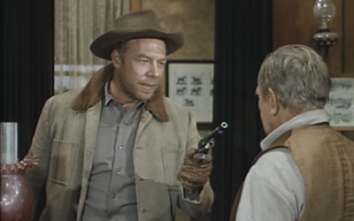 It was in color and opens with a train, so it was no zero-budget affair, even if in those days TV Westerns didn’t exactly rival Gone with the Wind in big-screen spectacle. It also had a good cast list, with Western character actors like William Demarest, Claude Akins, Philip Carey, George Kennedy and Rod Cameron all figuring. The series did well for guest stars.