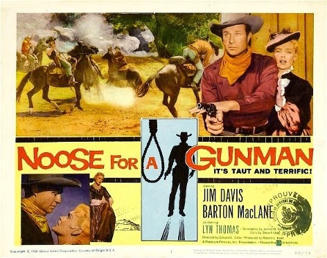 A few weeks ago on this blog I wrote a review of an Audie Murphy Western, The Quick Gun, and a kind reader, Boppa, left a comment to say that The Quick Gun was in fact a remake of a Jim Davis Western of only four years before. I didn’t know that, so I sought out the original and watched it, and can now tell you about Noose for a Gunman.
