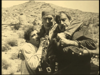 She falls in love with the noble Buck, and cannot but reveal the truth to him. She spills the beans about the murder. Buck’s face sets in a hard expression (which Hart specialized in) and he determines on a ruthless plan to get the villains to admit their guilt. He takes them both out on foot into the desert, without water, until one, the brother, breaks down and blurts out that Merton shot Billy. Meanwhile, the Kiowas have taken a hand. They, “insolent but inclined to be friendly”, have come to the wagon train and one pioneer has shot dead a brave who was fingering the shawl of his wife. The Kiowas demand a life for a life, or they will attack at dawn and annhilate the travelers. Uh-oh. Now Buck arrives back and guess who is chosen as the sacrificial lamb to give to the Kiowas? Why, evil Merton, of course.
