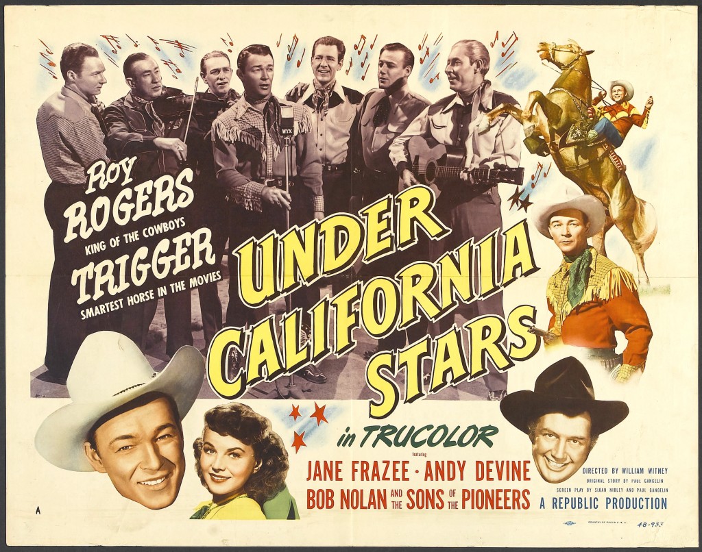 Another reason for the (relative) quality of this movie was that Republic had William Witney direct it. Witney had started at Mascot doing serials and when they merged with Republic he continued there. He really knew his craft. He did his first Rogers flick in 1946 and never looked back. California Stars was just one of six Roy Rogers pictures he did in 1948 alone – amazing, really. Late in life Witney wrote two books, In a Door, Into a Fight, Out a Door, Into a Chase (about his serial-directing career) and Trigger Remembered. They make entertaining reading.