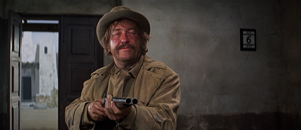 The story begins with the first in a series of depredations by three ugly, dirty, incompetent and brutal brothers, Emmett, Frank and Rufus Clemens, as they bloodily but unsuccessfully attempt to rob a bank in Mexico. The good news is that these brothers are played by Ernest Borgnine, Jack Elam and Strother Martin, respectively, and absolutely splendid as lowlife idiots they are too.