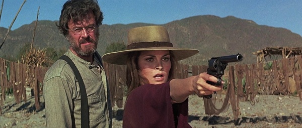 Ms Welch does quite a good job, in fact, playing it in a restrained and low-key way which works. Some critics have been unkind about Welch’s thespian talents, and it is true you do get the feeling she is there because of other endowments she possesses – the fact that Burt has her mooch about the rancho in a poncho but nothing else rather suggests that. And later there’s some business in which she is obliged to take a bath in skin-tight buckskins. Still, I don’t think she’s at all bad as the brutalized woman who wants to be empowered. She had, of course, already saddled up in Bandolero! in 1968 and 100 Rifles in 1969, so it wasn’t her first outing in the Wild West.