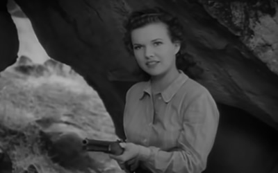 Cameron was rather in the second rank of Western leads maybe but he was always solid and reliable. His imposing build and gritty character made him suitable for the genre. And he is well supported in this one, with a rather charming Don Castle as his happy-go-lucky young brother Tim and the dramatically named if diminutive Gale Storm (right) as the tomboy homesteader Connie who starts hostile and gradually comes to love Rod. Storm was a Monogram contract player who had starred in Allied Artists (a sort of grown-up Monogram)’s 1947 hit It Happened on Fifth Avenue. She’d been in a few Roy Rogers oaters. Castle specialized in fresh-faced kid roles and had featured in Hardy boys movies. In 1942 he’d been in Tombstone, The Town Too Tough To Die, but he was only ever in five Westerns and never led in one..