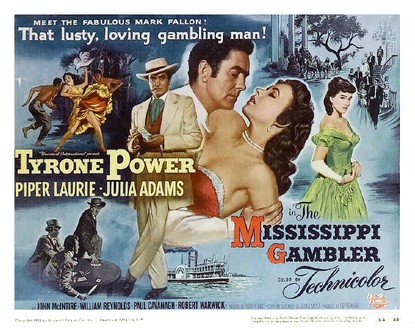 Anyway, you could have a look at The Mississippi Gambler, if you like that kind of thing. Bosley Crowther in The New York Times probably got it right when he said, “Notwithstanding its costumes, duels, courtly manners, gaming and brawls, The Mississippi Gambler is standard stuff. It is romantic adventure of a century ago and it is gone with the wind. And a good thing too.”