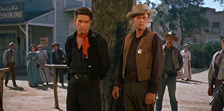 Paul Fix is Agar’s deputy, so that’s good. There’s also a semi-comic old-timer (James Gleason) who builds the gallows and becomes another deputy, and he turns out to be more resourceful than first imagined. So the sheriff is well supported.