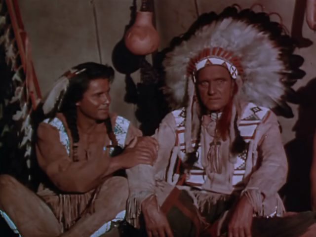 Rita Moreno has a rather perfunctory part as the daughter of a trader (Emory Parnell) and she dances for the Mounties at the trading post. She doesn’t get to say much but she does flash her legs about. I don’t quite know why an ‘Irish’ trader (well, I think Parnell’s accent was supposed to be Irish) should have a Puerto Rican daughter but hell, why not? This was only Rita’s second Western and she didn’t do many, though another, The Yellow Tomahawk, was also a Lesley Selander picture.