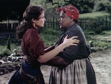 The writers were top-drawer – or would become so. The story was by Niven Busch, who had co-written the screenplay for the Gary Cooper/Walter Brennan Judge Roy Bean picture The Westerner the year before and who would, after the war, write the (in)famous Duel in the Sun (more popularly known as Lust in the Dust) and then fine noir Westerns such as Pursued and The Furies later in the 40s. The screenplay from Busch’s story was written up by Lamar Trotti, Fox regular since the mid-30s, who often wrote from a (rather romanticized) Southern perspective. He would pen pictures for John Ford and William A Wellman, including the excellent Western Yellow Sky. He was a considerable talent. However, the screenplay of Belle Starr is not excellent: we never really understand why Sam is still fighting a lost war, nor why he lets himself be captured so easily and so often. And there is a very paternalistic (and to us now patronizing) treatment of African-Americans. Naturally, Reconstruction is all bad, as usual in Hollywood Westerns, and Trotti gives us uppity darkies strutting insolently while the guerrilla brigands are noble and decent. The attitude to Black Americans the film adopts is pretty offensive to us nowadays and has probably helped to keep the movie off the TV schedules.