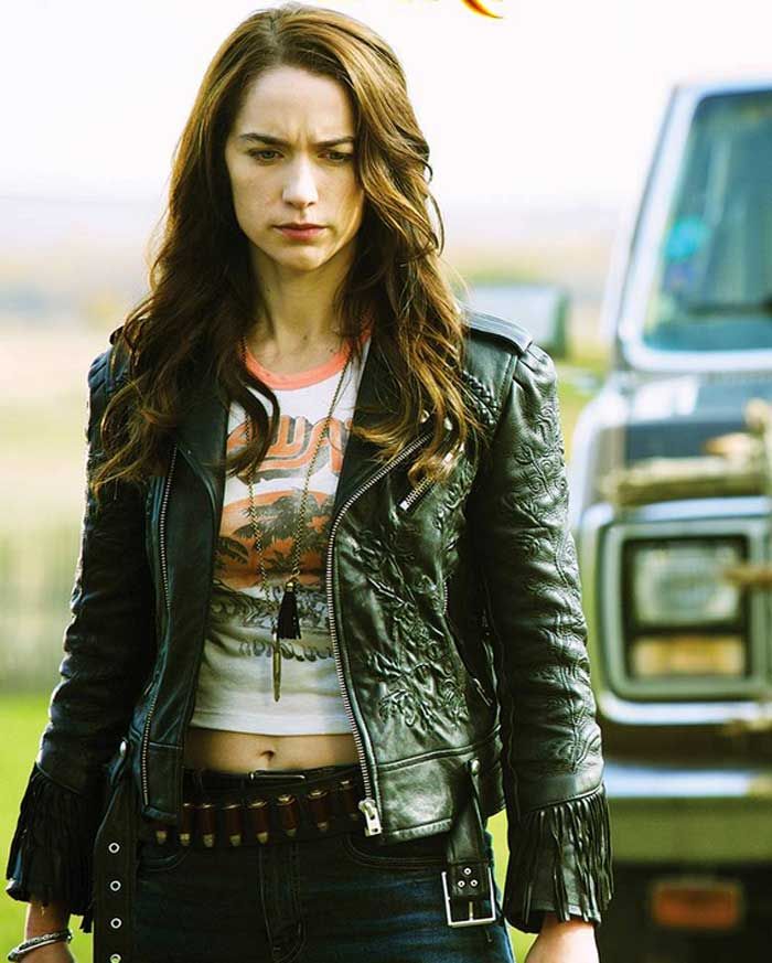 In fact the opponents might not be zombies. They could be undead or revenants or ghosts or walking dead or something; I’m afraid I’m not very up on the differences. Anyway, they are people Wyatt killed when he was alive who come back to revenge themselves on his heir, and the current holder of that office is bad girl Wynonna (Melanie Scrofano, below).