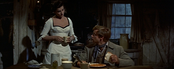 There’s a slight Jubal feel to the picture, especially concerning the jealousy of the rancher towards possible lovers of his beautiful companion (Columbia’s Jubal came out the month after), though director Robert Wise, famous for the likes of West Side Story and The Sound of Music, did not have the Western track (or trail) record of Jubal’s director. Wise was actually very talented (as the wonderful Blood on the Moon showed) and it’s a pity he didn’t do more Westerns, but he despised the genre generally. Poor fool.