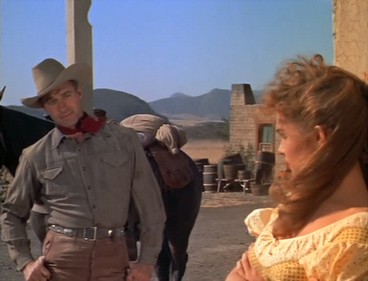 Director Bartlett told the French cinéaste Bertrand Tavernier, “I am a disciple of Christ, and an artist … I hate sex and violence.” And there is indeed something vaguely parable-like in the story. Caruso’s Marco says that the stranger is the “conscience for the whole town” and Joe Dakota brings redemption to the inhabitants, who repent. There is no sex (though Patten’s character is remarkably sultry and Lolita-esque) and only one gunshot, fired in the air at that. But the moral tale isn’t done preachily or in a heavy-handed way; rather with a light touch.