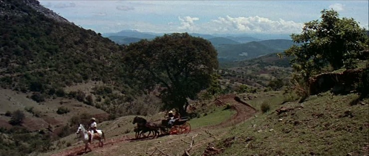 The picture was shot in Mexico, in Morelos and Guerrero, and very attractive the locations are too, nicely shot by Alex Phillips, a Canadian cinematographer married to a Mexican and living in Mexico. He also photographed Robert Mitchum’s The Wonderful Country and Chuck Connors’s Geronimo, both filmed down Mexico way. In fact much of the crew and many of the extras are Mexican. It’s odd, though: you can often tell when it’s a Mexican movie. Maybe it was the film stock or something but this picture doesn’t look like the usual bright-colored Universal Westerns. Or maybe it’s the transfer to DVD.