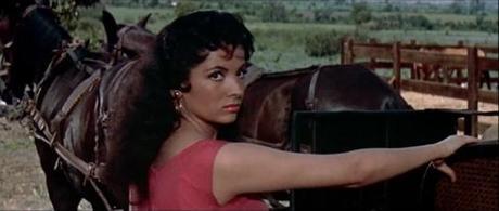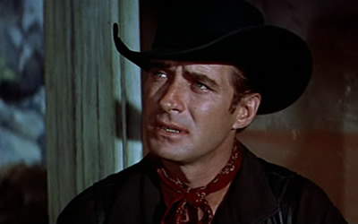 Then Ellison turns up at Lorne Greene’s hacienda, where Gilbert Roland is the foreman. On the way he spotted Lorne’s daughter, third-billed Linda Cristal, bathing in a pool (a standard way of getting some mild titillation into staid 1950s Westerns) and he saucily pinches one of her undergarments. We sense a romance looming. Actually, this is one of the weaknesses of the picture: the relationship between the hacendado’s daughter and the gunfighter is never developed and is at best cursory, yet they are supposed to be deeply in lerve and go off together at the end of the movie. They’ve hardly talked to each other by then. This was of course well before The High Chaparral and Linda was not well known to American Westernistas. She’d just had a small part in Comanche a couple of years before.