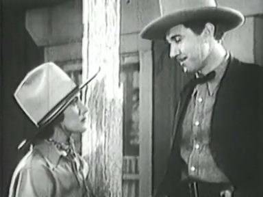 In Stoddard’s saloon in the town of Sweetwater (one of the most popular names for Western burgs), Ted asks the barman for sarsaparilla. Though Prohibition had ended in 1933, mid-30s heroes, at least in juvenile Westerns, were generally teetotal. But there were no such moral or social embargoes on gambling and Ted gets into a game of stud poker. When he loses his ranch to Stoddard (the deal was probably rigged) and is also accused of the death of Stoddard’s brother Jake (Barney Phillips in his debut) he determines to bring the baddies to book.