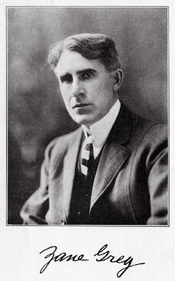 Like Cooper and Wister, Grey was not a Westerner. Pearl Zane Gray (1872 – 1939) was born in Zanesville, Ohio, a city founded by his great-grandfather Ebenezer Zane. Soon after his birth his father, a dentist, changed the name to Grey, who knows why. As a boy, Pearl (he adopted the second name Zane later) loved baseball and fishing, and was an avid reader of James Fenimore Cooper and dime novels. He wrote his first story, Jim of the Cave, when he was fifteen. His father disapproved, tore it to shreds and beat him. Not the greatest start to a literary career. But the young man did get some writing published – not Western stories but articles on fishing in Field and Stream.