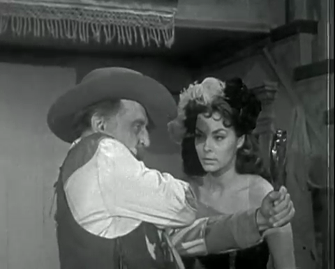 They go to Oklahoma, where they learn the Checkers gang are. There, in a saloon where the patrons have to check their guns, they see Luke’s twin brother’s pistol, on the rack. It belongs to Kale Tanner (Kenne Duncan), leader of the Checkers. There’s a fight with spurs (we’ve had the flesh, now it’s the spur’s turn). This is really the only thing that makes this Western memorable in any way.
