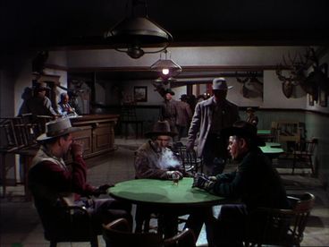 The women are Joan Leslie as Sally, rechristened for the film Laurie, and Ellen Drew as Nan. Leslie, in the second of her seven Westerns, comes across mainly as a gold-digger and either the screenplay or the actress (or a combination, I suppose) didn’t quite get the novel’s Sally right. Sally was a more subtle character than that. Drew as Nan, though, is very good. Her “fresh-faced good looks and high-wattage smile” as the IMDb bio call them, are put to good effect. You may remember her as the woman Glenn Ford and William Holden both covet in The Man from Colorado, or as Joel McCrea’s wife in Stars in My Crown.