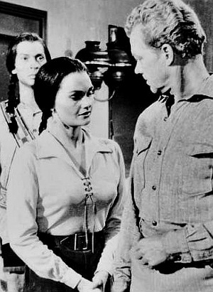 In Oklahoma Territory Houston is played by Bill Williams. Bill was probably best known for being Kit Carson on TV in the early 50s but he was no stranger to feature-film oaters too, appearing in twenty-two, and himself led in five. He sometimes played the bad guy but was unusual as a goody in that he was blond.