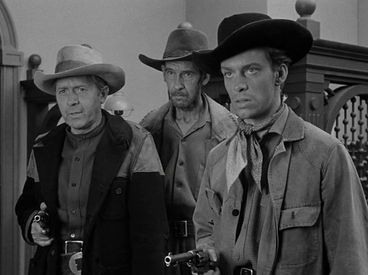 Also on the posse are four notable townsmen-oligarchs (Warner Anderson, James Kirkwood, Will Wright and Tom Powers) but they are on the pusillanimous side, like many townsmen in Westerns. Drune will have little to do with them and go his own way. But they will play a key part in the plot later.