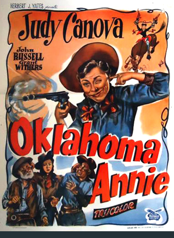 I’m not quite sure why it’s called Oklahoma Annie because Oklahoma Annie does not appear. She’s dead. She was, we are told, the grandmother of Judy Canova (Judy Canova), the storekeeper in a Western town, and Judy has a (rather forbidding) photograph of grandma in her general store. The old girl was a “lady sheriff” in Oklahoma back in the day.