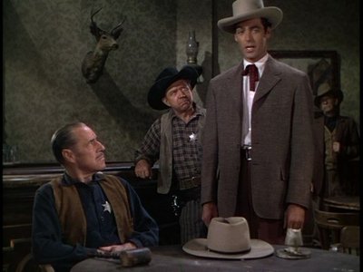 To explain the title, sort of, neither McCrae nor Calhoun is a frontiersman; rather, the word is, an intro voiceover tells us, a term which refers to a lawman. The Wild West was truly wild, and we know this from early Warners stock footage of saloon brawls and shoot-outs and such, and it was the tough badge-wearers who put that right. So much so that in Laramie, no one wears a gun anymore and law ‘n’ order reigns supreme. Imagine the shock of the townsfolk, therefore, when a shooting match breaks out in the Great Divide Saloon. Not only that, one of the combatants is the sheriff’s own son, Logan (McCrae). His dad, who seems to be both marshal and judge, immediately convenes a court in the same saloon and sentences his boy to ten days. The lad’s opponent, badman Kearney (Edwin Rand) tells Logan he’ll get him for this and Logan tells him not if I see you first. So when said Kearney is found shot dead, well, the suspicion falls on Logan. Of course Logan is innocent, as any fool could tell, but it would spoil the plot if anyone realized that.