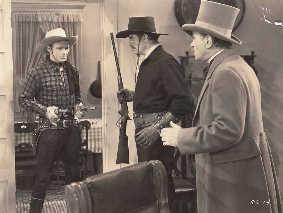 The glam daughter, Janice, is played again by Lynne Roberts, billed as Mary Hart, so that Republic could have posters that appeared to be headed ROGERS AND HART. Her dad, the crusty old colonel, is Western vet J Farrell MacDonald. In the ‘rest of the cast’ list figure both George Montgomery, as Ranger in black hat, uncredited, and Robert J Wilke as Henchman, uncredited, but I didn’t spot either. A pity because it was the great Bob Wilke’s very first Western. I’ve always been a serious Wilke fan. Montgomery was already a hardened trail hand, having had ride-on bit parts in half a dozen Westerns, including the previous Roy Rogers outing, Billy the Kid Returns. He would not lead in a Western until 1941 so sagebrush fame was some way away yet.