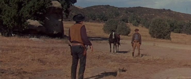 I found this Western to be perfectly satisfactory, even good. It’s a classic ‘straight’ late-50s oater, done in nice color (though on my DVD the tints have turned a bit green), shot in pleasant Iverson/Corriganville/Vasquez locations by Harry Neumann, with good music by Martin Skiles (who did such a fine job on Fort Osage), skillfully directed in an almost Boetticheresque way, I thought, by Springsteen, and with a very good cast. Brian Garfield said that Lovejoy “makes it bearable, but only just” but I think that’s harsh. If you like your Westerns actionful and densely plotted, you’ll go for this one – even if it has nothing to do with the real Cole Younger, who was not a gunfighter in the Hollywood sense in any case…