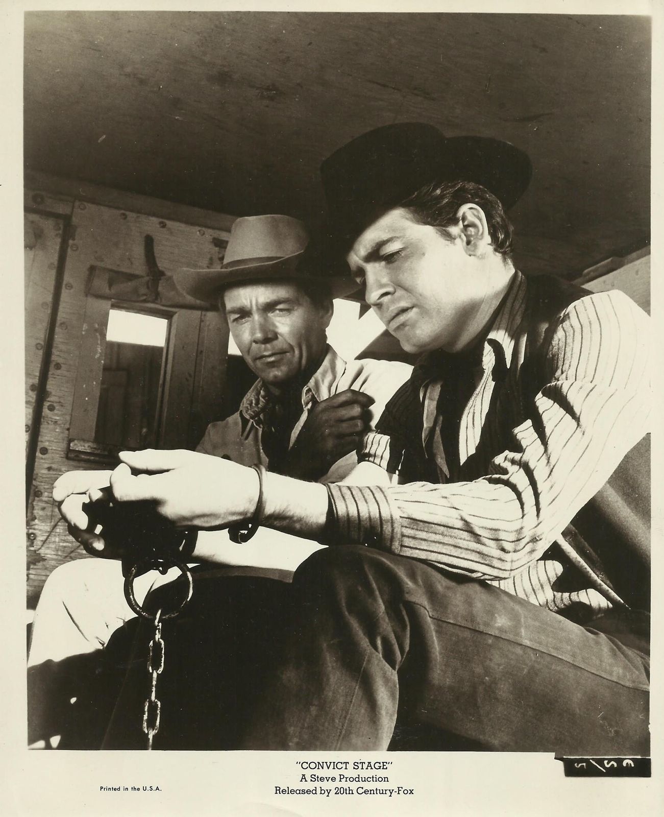 But there’s an old lawman, Marshal Jethro Karnin, who will have none of it. He is going to do his duty and take the accused men from Apache Wells to Prescott (it’s an Arizona tale) for trial. The law must take its course, however guilty the youths may or may not be. So actually the title’s wrong because they aren’t yet convicts, but let’s not split judicial hairs. Karnin, who in the dialogue claims still to have a decade to go before his allotted three score years and ten, is played by Don ‘Red’ Barry (then 53). Poor Don wasn’t quite on the skids yet (he would be reduced to bit parts and would eventually succumb to a self-administered gunshot wound) but his career was hardly in the apogee. In fact, though, he doesn’t do badly as the no-longer-young peace officer.