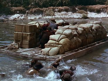 We open with an attack on a raft carried out by some Brits in plain clothes led by tough Captain Demming (George Eldredge, Dr Tobor in Captain Video but a regular in Westerns – usually as the heavy – since 1940). This vessel is carrying salt for the Shawnee as part of the US’s deal with them. By grabbing it, and then blowing it all up in the river, the sneaky Brits get the Indians to believe that the brave US is reneging on its deal. As if.