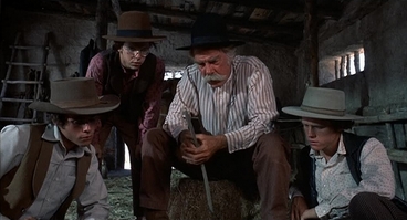 I like The Spikes Gang. Marvin is splendid as the old rogue Harry Spikes and the three lads he takes under his wing are, I think, endearingly naïve. It opens with a Great Expectations-ish scene as the three teenager friends Will, Les and Tod find the old man close to death after a bank robbery gone wrong, all shot up, and they secretly nurse him back to health – secretly because their parents would not approve.
