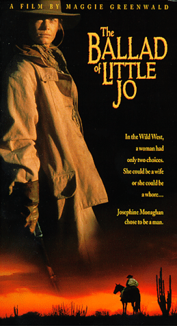 with a green Easterner learning the ways of the West, becoming a self-reliant, lone, feet-on-the-ground frontier type and finally a plucky homesteader with a gun standing up against over-mighty bullies. We’ve seen that one before. Yet in other ways it is an ironic, subtly subversive debunking of the macho myth. Kitses says, “At once both traditional and revisionist, The Ballad of Little Jo recycles the classic Western but also goes beyond it.”